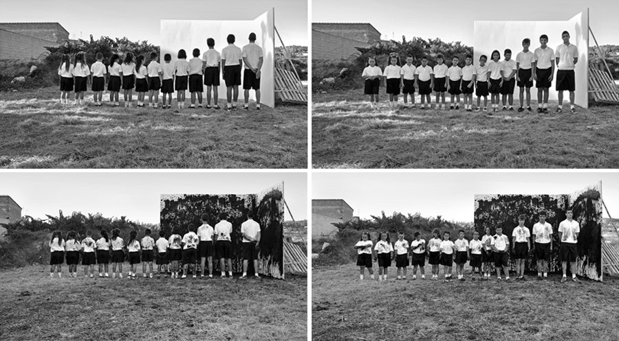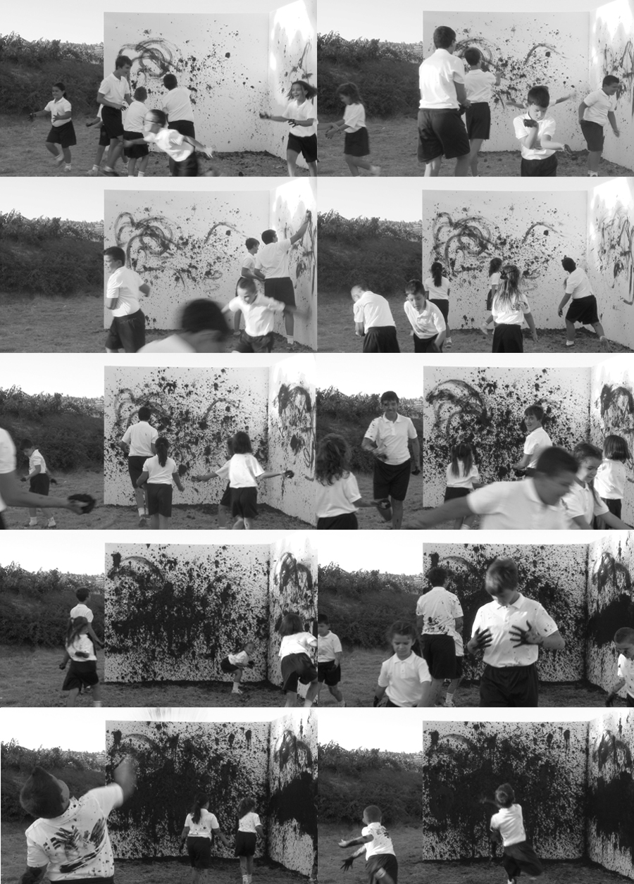 Trece actores que han crecido con la crisis económica del 2008 lanzan 2.263 raciones de pintura y sopa de letras contra un espacio en blanco. Las raciones coinciden con el número de días transcurridos desde la primera mención de la palabra crisis en los medios de comunicación por el jefe del estado español hasta el día en que fue registrado el video.